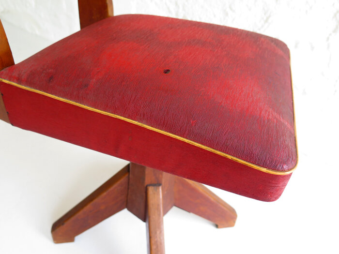 Image 1 of 4 Image 2 of 4 Image 3 of 4 Image 4 of 4 Vintage Desk Chair €0.00 Sold Out Vintage swivel desk chair with leatherette seat with some time marks. W40, D45, H90cm. Sold Out Added! Vintage swivel desk chair with leatherette seat with some time marks. W40, D45, H90cm.
